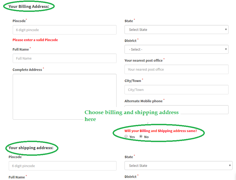 In e-commerce site billing and shipping address are most important because if you want to give some gift to love one but you don’t want to show your identity or if you want to send product to your home but billing will come on your office address than billing and shipping address is playing a good role for selecting the same.