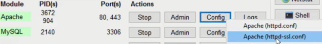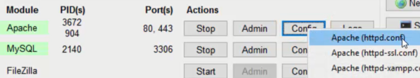 - Click on Config by Apache and select httpd.conf (First option)